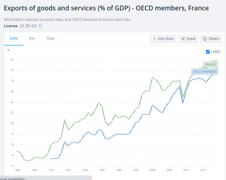 به طور کلی صادرات سهم فزاینده و بالا در کشورهای توسعه یافته نشان میدهد.