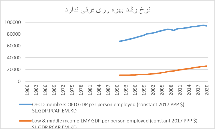در مورد درآمد سرانه: تفاوت نرخ بهره وری نیروی کار وجود ندارد و تفاوت بهره وری در سطح بهره وری است.علت عدم همگرایی درآمد سرانه در عدم تعریف حمایت درست ، به عنوان GDP و محروم بودن کشورهای در حال توسعه از تعریف و عرضه حمایت درست (حمایت مالی بلاعوض به معنای رایگان پایدار جامع از تولید با اولویت به استمرار تکنولوژی در نفی اشتغال کامل) است.